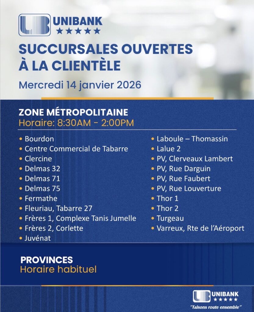 La UNIBANK invite, en conséquence, les clients visés par ces dispositions à se présenter à l’une de ses succursales...