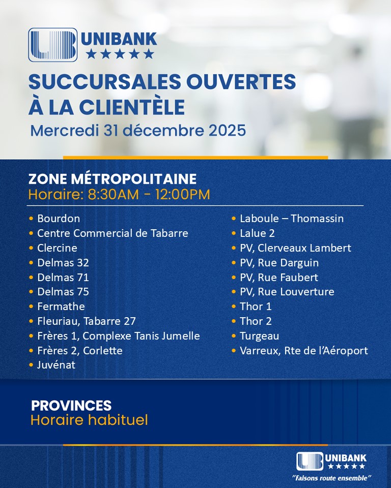 SUCCURSALES DISPONIBLES | MERCREDI 31 DÉCEMBRE 2025