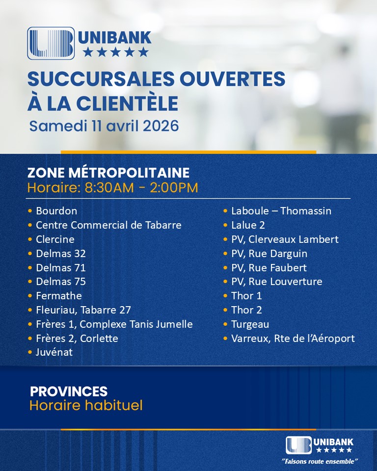 La UNIBANK invite, en conséquence, les clients visés par ces dispositions à se présenter à l’une de ses succursales...